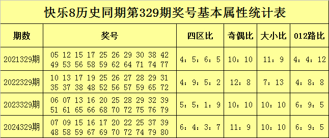 万妙仙快意8历史同时第329期奖号基本属性分析