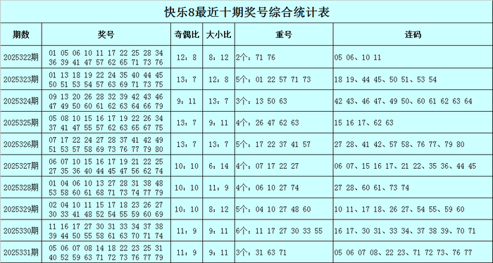 奇偶分析:上期奖号奇偶比开出11:9,奇偶号码走势基本平衡,近7期奖号奇偶比为78:62,奇数号码总体走势较热,比较于上期,本期展望奇偶号码走势链接,看趣味偶比10:10。 大小分析:上期奖号大小比开出9:11,小 号走势较热,近7期奖号大小比为65:75,小 号走势施展较热,比较于上期,本期展望大小 号码走势链接,看好大小比10:10。 重号分析:上期开出3个重号:31、63、71,历史上包含重号的奖号有1799,占开奖比例的100%,重号彰着每期必出,平均每期开出5.0个,其中有1734期奖号包含2-8个重号,占重号期数比的96%,是重号出现的重心,最近10期重号出现41个,重号相对较冷,本期展望出现5-6个重号,温煦重号18、22、23、31、40。 连码分析:上期奖号包含连码05 06 07 08、22 23、71 72 73、76 77,历史上包含连码的奖号有1793,占开奖比例的100%,连码是每期研究的重心,本期瞩目连码组合22 23、37 38、40 41、45 46、48 49。 冰丫头知足8第2025332期奖号详尽推选: 杀8参考:34 42 51 54 56 70 75 80 选一推选:74 选二推选:37 74 、31 66 、26 45 、66 68 、57 61 选三推选:11 37 74 、31 48 66 、26 37 45 、48 66 68 选四推选:11 37 48 74 、31 40 48 66 、26 37 40 45 、48 61 66 68 20码大复式推选:01 11 18 22 23 26 31 37 38 40 41 45 46 48 49 57 61 66 68 74 17码复式推选:01 11 18 22 26 31 37 38 40 41 45 48 57 61 66 68 74 (可作念选10复式、胆拖投注) 15码小复式推选:11 18 22 26 37 38 40 41 45 48 57 61 66 68 74 (可作念选9复式、胆拖投注) 选10参考:11 22 26 37 40 45 48 57 66 74 、01 11 22 31 38 40 41 48 57 66 、01 18 22 26 31 37 40 45 48 66 、26 37 38 40 46 48 57 61 66 68 选9参考:11 22 26 37 45 48 57 66 74 、01 11 22 31 38 40 48 57 66 、01 22 26 31 37 40 45 48 66 、26 38 40 46 48 57 61 66 68 选8参考:11 26 37 45 48 57 66 74 、01 11 22 31 38 40 48 66 、01 26 31 37 40 45 48 66 、26 40 46 48 57 61 66 68 选7参考:11 26 37 45 48 57 74 、01 22 31 38 40 48 66 、01 26 37 40 45 48 66 、26 46 48 57 61 66 68 选6参考:11 26 37 45 48 74 、01 31 38 40 48 66 、01 26 37 40 45 66 、26 48 57 61 66 68 、22 38 40 46 57 61 选5参考:11 26 37 48 74 、01 31 40 48 66 、01 26 37 40 45 、26 48 61 66 68 [扫码下载app江都区大桥镇凌云鞋服厂网站_阿里巴巴旺铺,中过数字彩1千万以上的群众齐在这儿!]