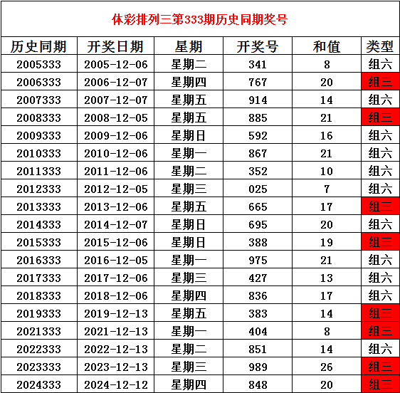 2025年12月13日胪列三第333期开奖,历史同本领别开出奖号: