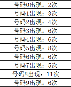 其中,组三开出8次,组六开出11次,本期看好开出组六号码。 另外,在历史同时开奖中,号码0-9分离出现: