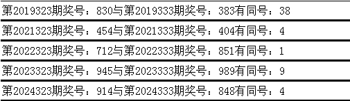 其中,号码奇偶比为28:29,奇偶号码走势基本执平;号码大小比为36:21,小 号走势相对较冷;号码012路比为20:14:23,1路号码出现较少。 与前期历史同时奖号对比分析,在最近五年开奖中,第323期同时奖号与第333期同时奖号王人出现了换取号码: